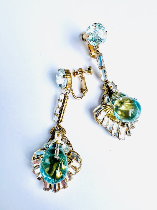 Chrysanthemum poured glass earrings in Bristol blue